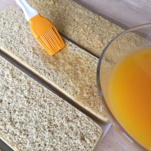 - Imprégnez-les d’un côté de sirop à la passion. Étalez la ganache sur chaque face ou vous avez mis le sirop, alternez ganache et biscuit.
