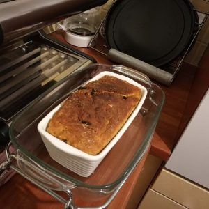 - Beurrez le moule à cake, mettez la pâte et ajoutez les cuillères à soupe d’eau dans la cocotte.