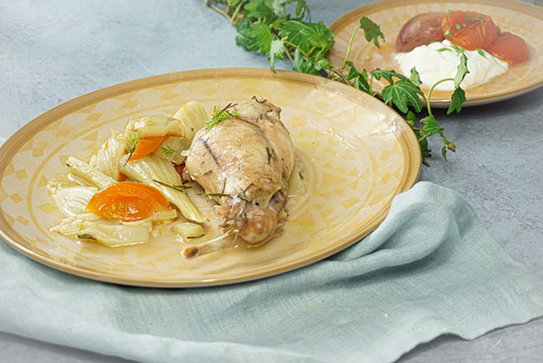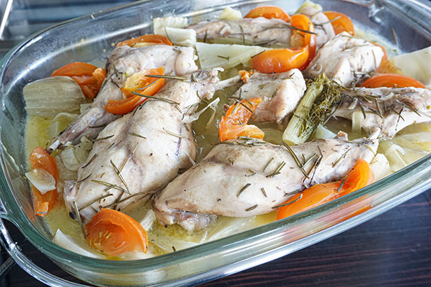 La recette de Lapin au vin blanc et fruits pochés
