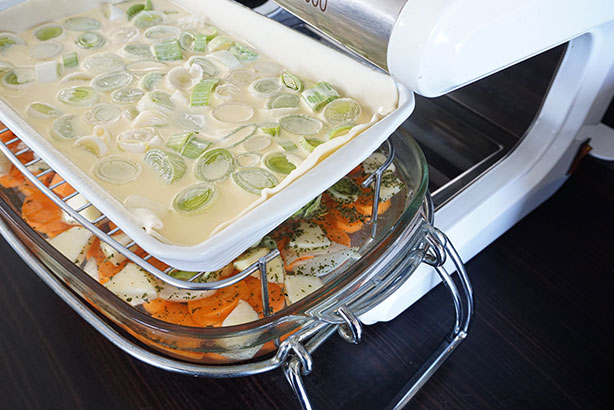 Matériel : Omnicuiseur Vitalité 6000, la grande cocotte (10 personnes) + Grille (position haute) + Plat à gratin