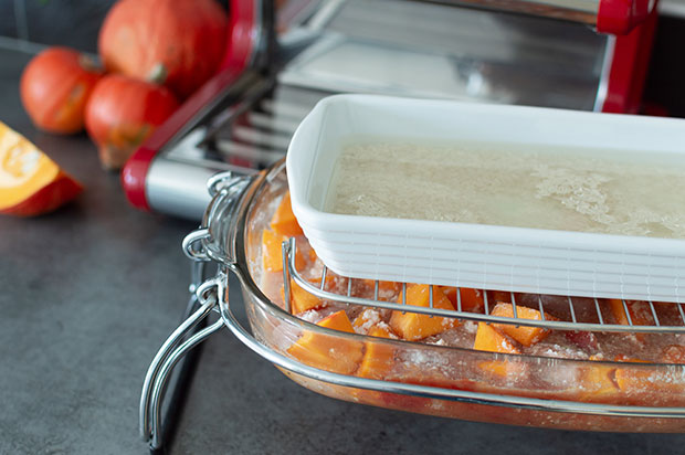 • Déposez ensuite la grille en position haute dans la cocotte.