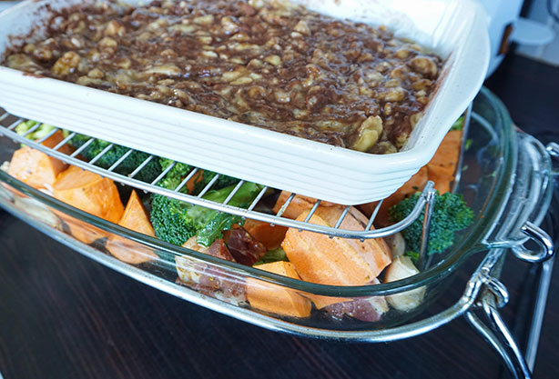 Matériel : Omnicuiseur Vitalité 6000, la grande cocotte (10 personnes) + Grille (position haute) + Plat à gratin