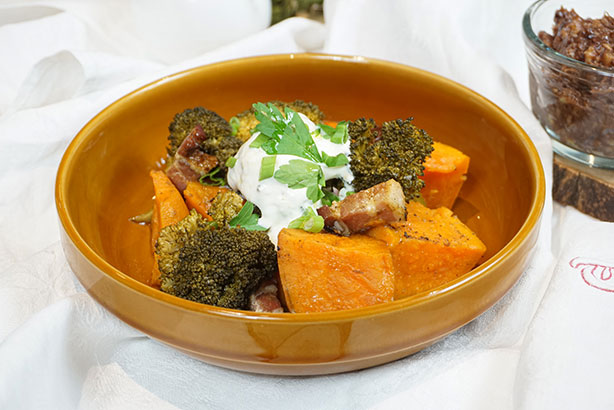 Ingrédients 600 gr patate douce 1 brocoli 5 gousses d’ail en chemise 150 gr de poitrine fumée coupée en gros[…]