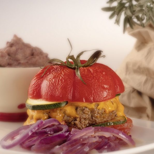 Mijoté de saucisses de sanglier au piment d’Espelette (tomate, oignon, poivron) et riz aux herbes de Provence