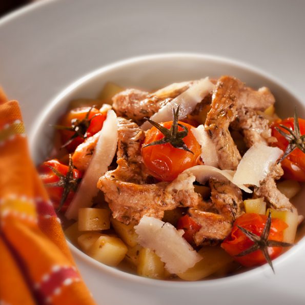 Emincé de dinde aux tomates cerises et vinaigre balsamique